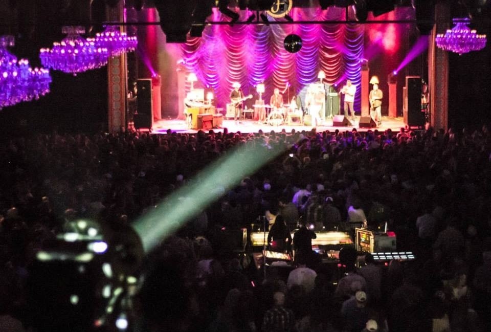 Last Friday at the Fillmore Denver, JJ Grey and Mofro headlined a big lineup that included Keller Williams and Nicki Bluhm & the Gramblers. With his white pants and light blonde hair, I really had to take the white down, he looked like an angel in some pics. I’d never seen someone working the spotlight there before, so I got a shot of him, as well as those majestic chandeliers. Read my Westword review of the show here: